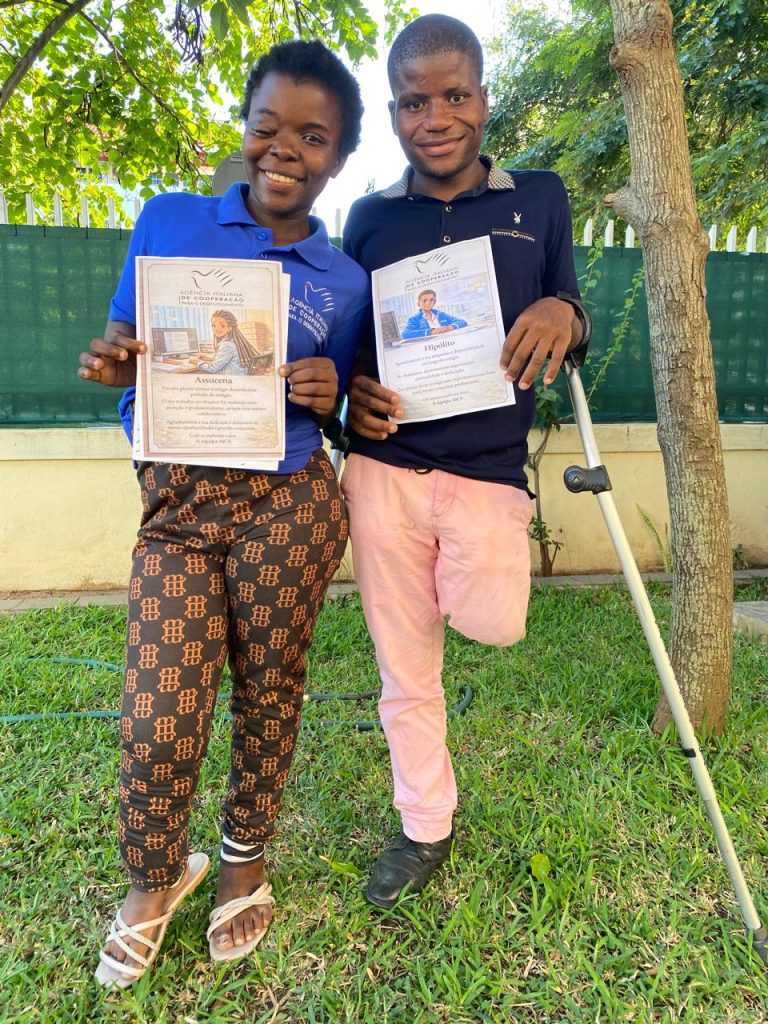 Hipólito and Assucena were the first interns to be welcomed at AICS Maputo under the Italian Cooperation Programme’s inclusive internship initiative, Job Creation through ICTs, which aims to promote professional opportunities for young people with disabilities and strengthen their inclusion in the labour market.